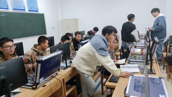 学生在PCB制板实训室学习